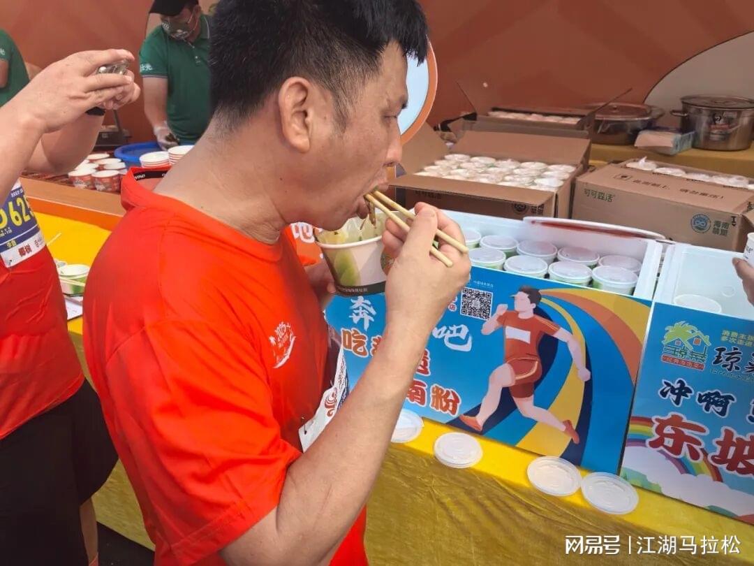 比赛最让我惊艳的,是14K后的专属粉食体验,多家粉店、多种风味齐上阵,让刚刚跑累的大家品尝到海南粉的地道。这样的补给站,比较有特色,很容易成为赛事的标签。
